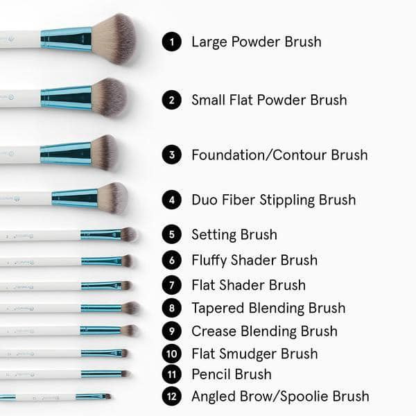 براش آبی بی اچ کازمتیک یک براش 12 تایی حرفهای به همراه کیف آبی زیپدار است. این ست برای صورت و چشم طراحی شده و موهای بسیار متراکم و با کیفیت دارد. بافت براشها به طوری ساخته شده تا هر نوع موادی چه پودری، چه کرمی و یا مایع را به خوبی فید کند و بیشترین صرفهجویی را در مصرف مواد آرایشی داشته باشد. با این ست دیگر نیازی به سایر براشهای آرایشی ندارید و به وسیله آن میتوانید کرمپودر، کانتور، رژگونه، هایلایتر و سایه چشم خود را به خوبی بزنید و لذت ببرید.