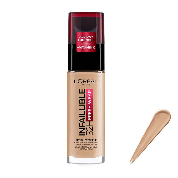 کرم پودر Infallible لورآل، با پوشش و ماندگاری 32 ساعته، رنگ پوست را یکنواخت می کند. این کرم پودر دارای SPF25 و ویتامین C است که از پوست در برابر اثرات مخرب نور خورشید محافظت می کند. کرم پودر لورآل ضد حساسیت است و رطوبت و تعریق در پوشش آن تغییری ایجاد نمیکند.