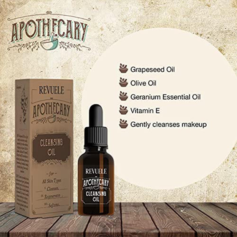 روغن پاک کننده صورت رووئله مدل Apothecary حاوی روغن هسته انگور، روغن زیتون، عصاره شمعدانی و ویتامین E است. این محصول تولید شده است تا پوست شما را از آلودگی هایی نظیر باقی مانده ی آرایش و سبوم پوست، پاک کند. روغن هسته ی انگور یک مرطوب کننده سبک است که به راحتی و بدون پر کردن منافذ پوست جذب می شود. این روغن روند ایجاد چین و چروک های پوست را کند میکند و آن را نرم میکند.
